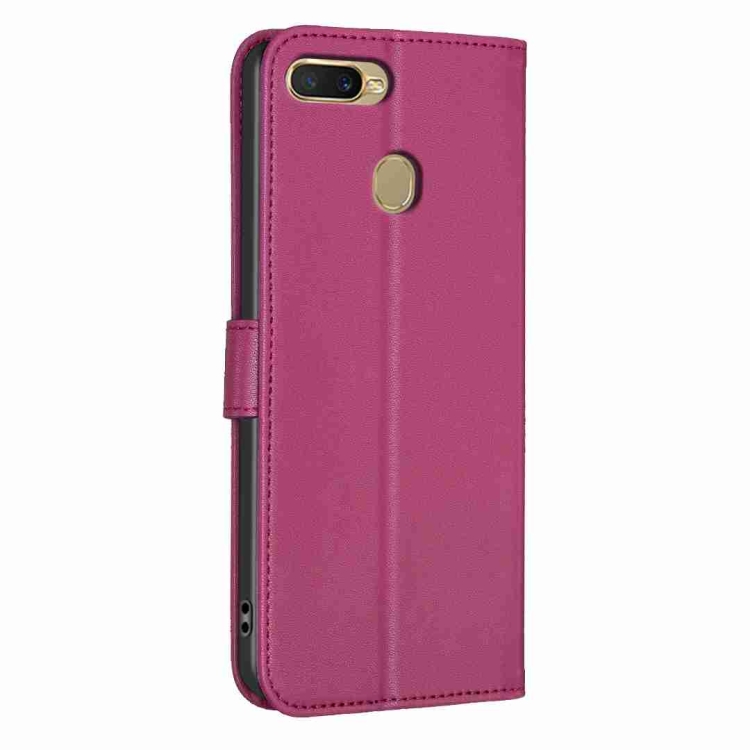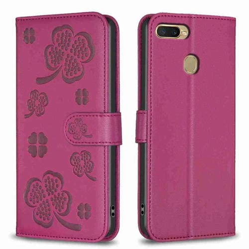 Para Oppo A7 Funda de Teléfono de Cuero con Relieve de Cuatro Hojas (Rojo Rosa)