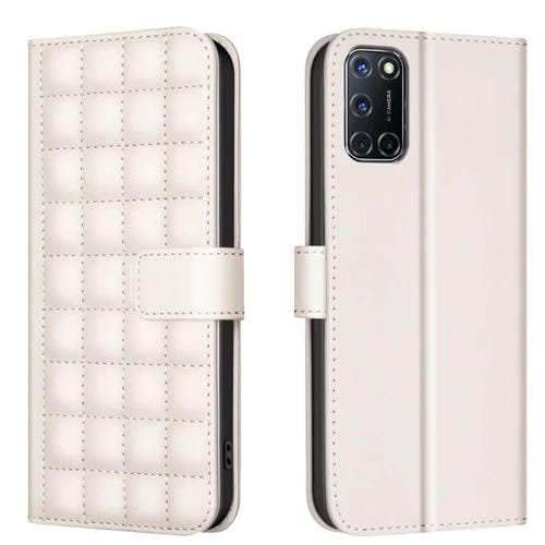 Para Oppo A72 / A52 / A92 Funda de Cuero para Teléfono con Textura Cuadrada (Beige)