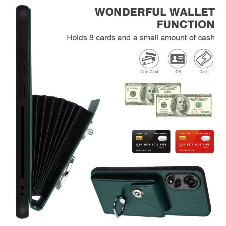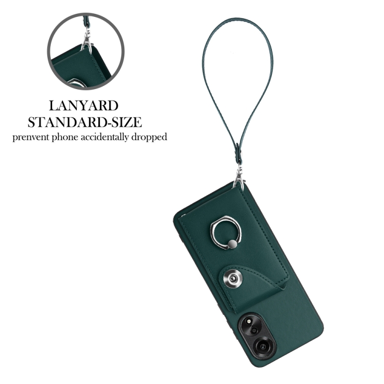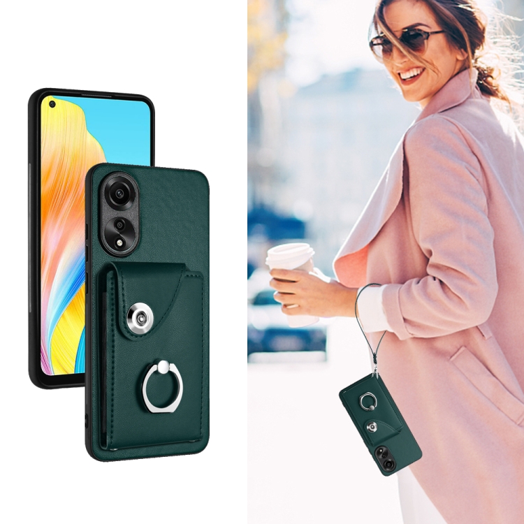 Para Oppo A78 4G Global Organ Card Bag Ring Holder Pu Funda para Teléfono con Cordón (Verde)