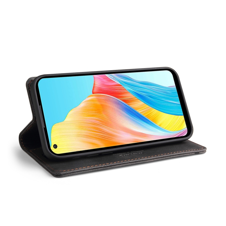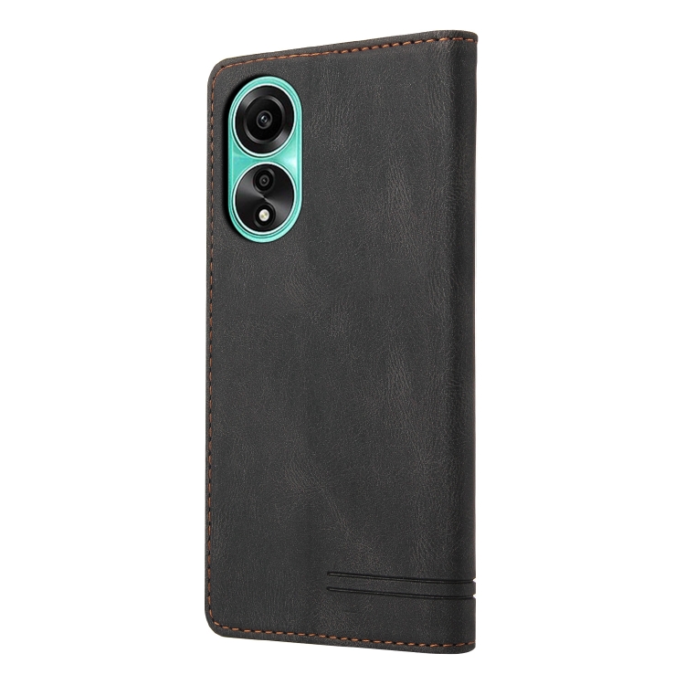 Para Oppo A78 4G Skin Feel Funda de Cuero con Tapa Horizontal con Cepillo Antirrobo y Soporte (Negro)