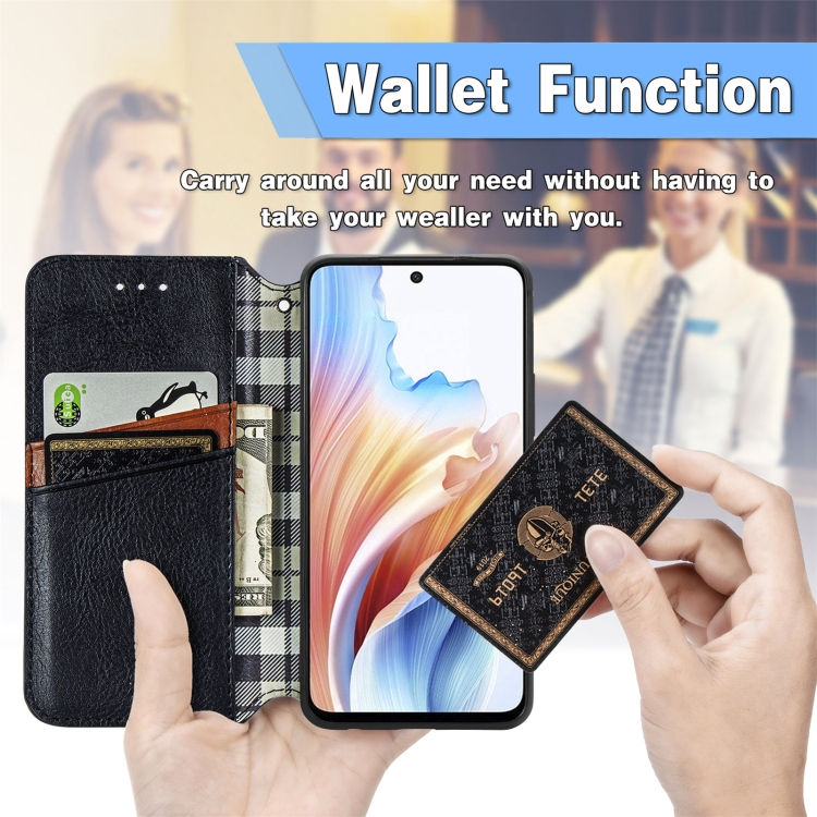 Para Oppo A79 5G / A2 5G Cubic Grid Funda de Teléfono de Cuero Magnético Prensado (Verde)