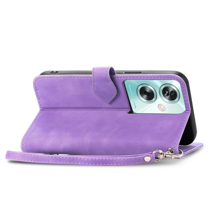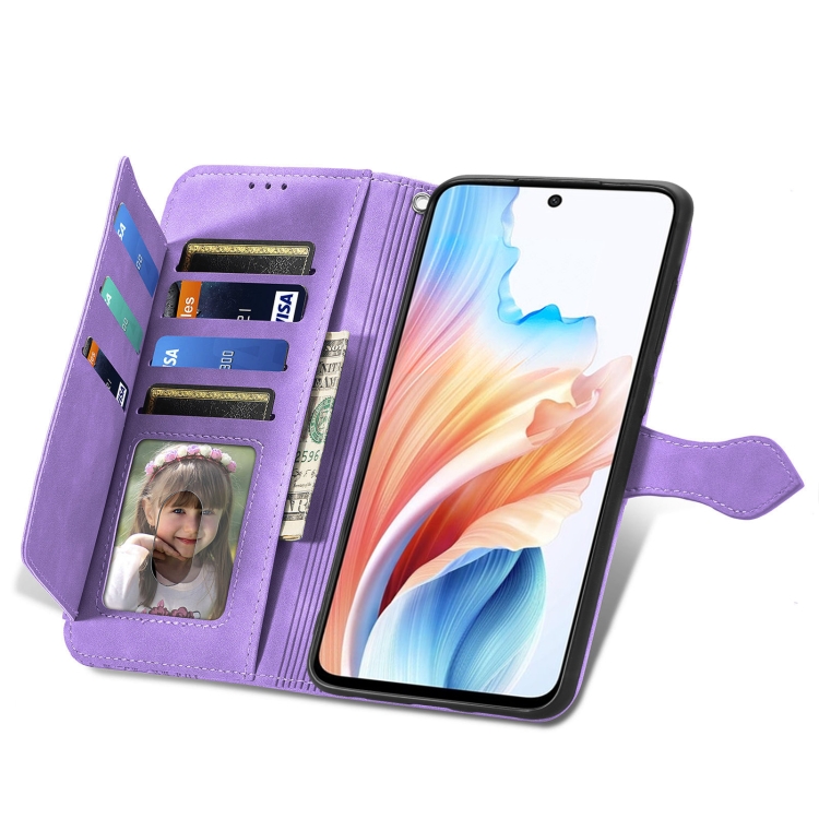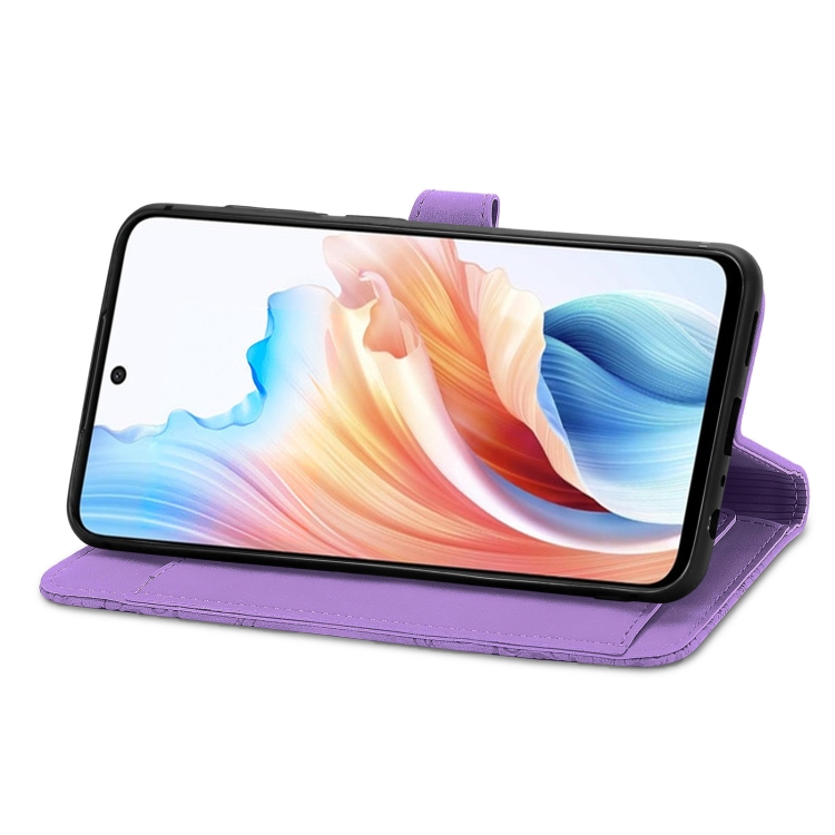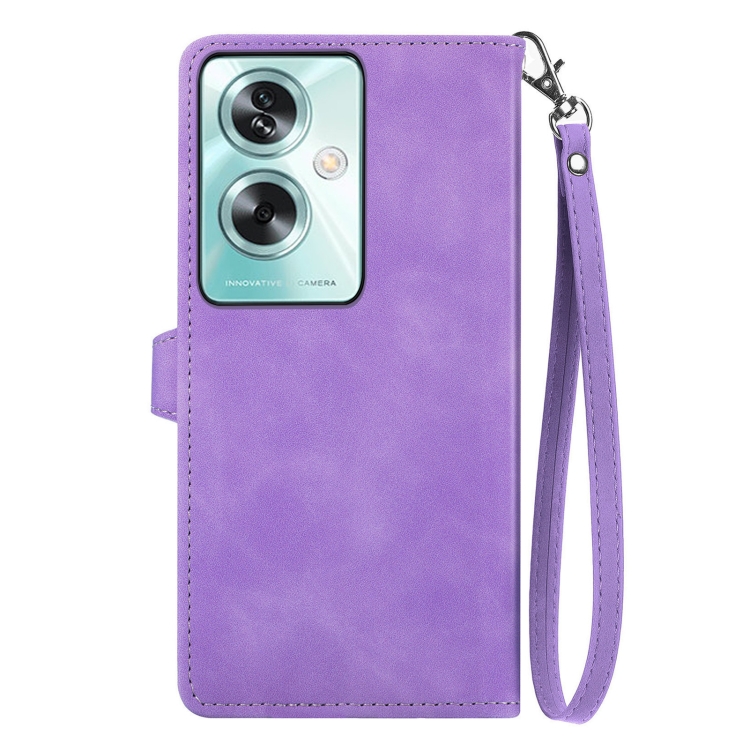 Para Oppo A79 5G / A2 5G Funda de Cuero con Cremallera y Flores En Relieve para Teléfono (Púrpura)