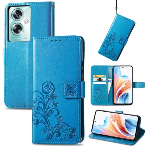 Para Oppo A79 5G / A2 5G Funda para Teléfono de Cuero con Hebilla En Relieve y Cierre de Cuatro Hojas (Azul)