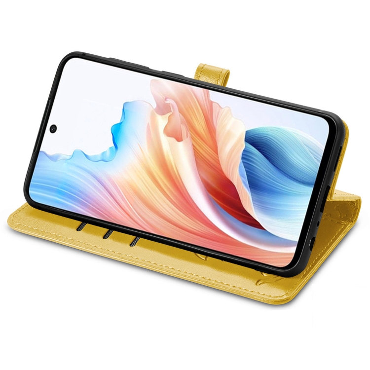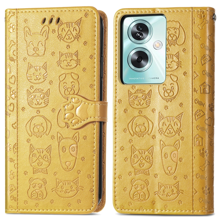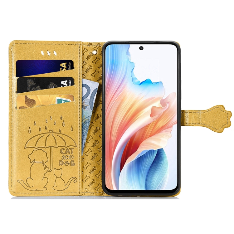 Para Oppo A79 5G / A2 5G Funda para Teléfono de Cuero con Relieve de Perro y Gato (Amarillo)