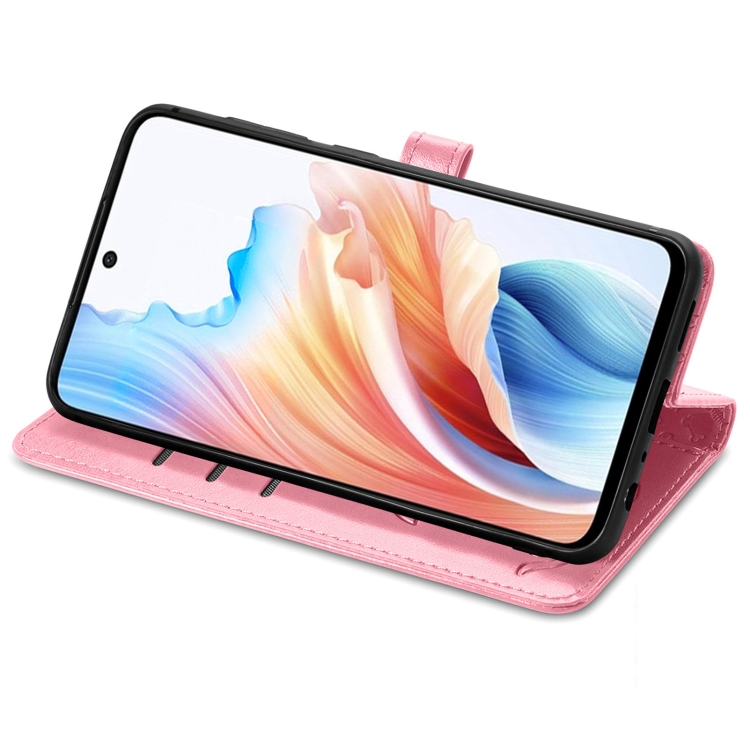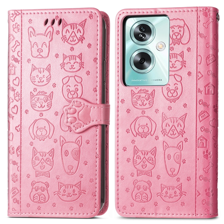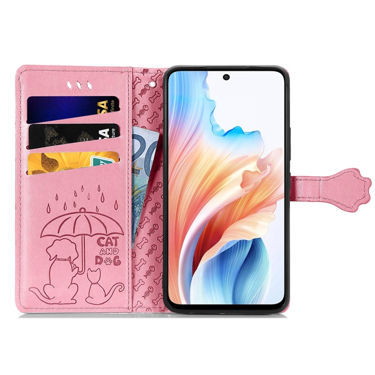 Para Oppo A79 5G / A2 5G Funda para Teléfono de Cuero con Relieve de Perro y Gato (Rosa)