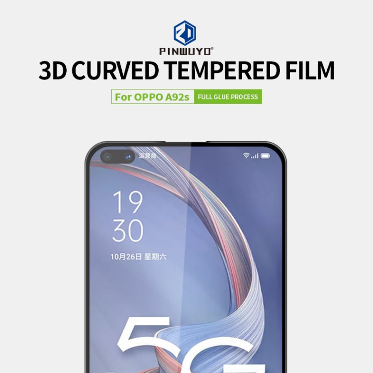 Para Oppo A92S Pinwuyo 9H 3D Curved Curved Película de Vidrio Templado a Prueba de Explosiones (Negro)