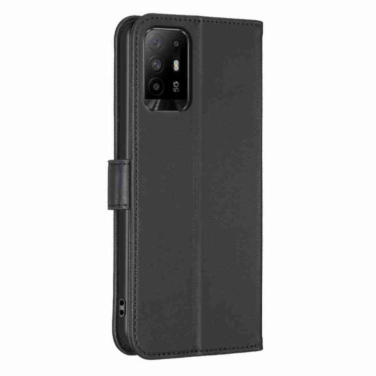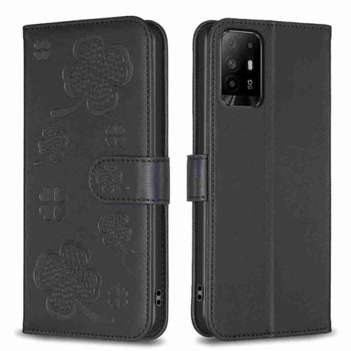 Para Oppo A94 5G / Reno5 Z / F19 Pro + Funda para Teléfono de Cuero En Relieve de Cuatro Hojas (Negro)