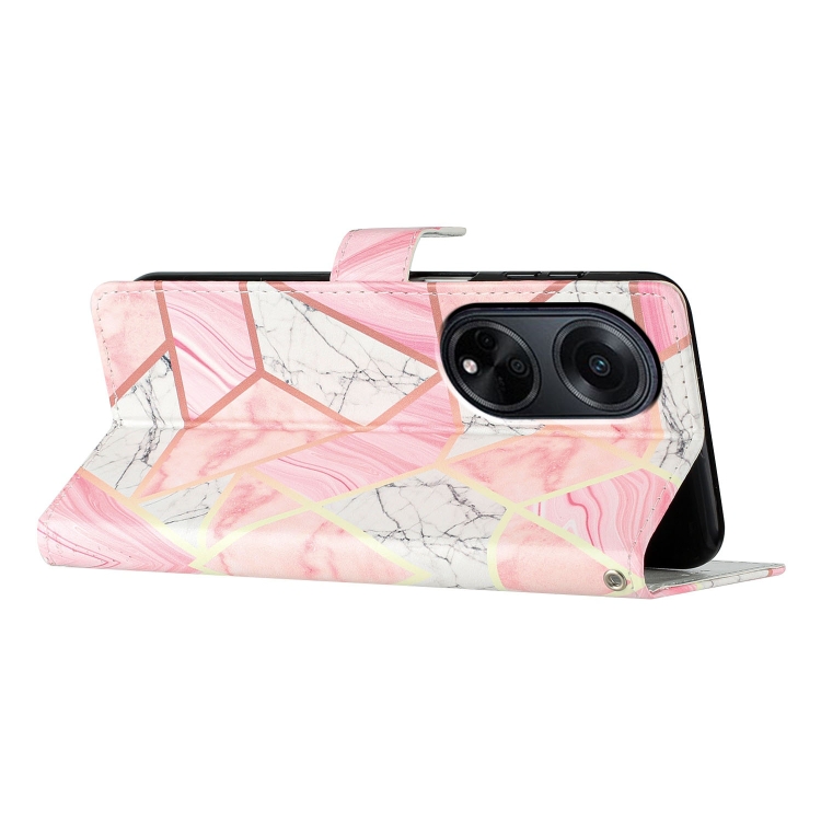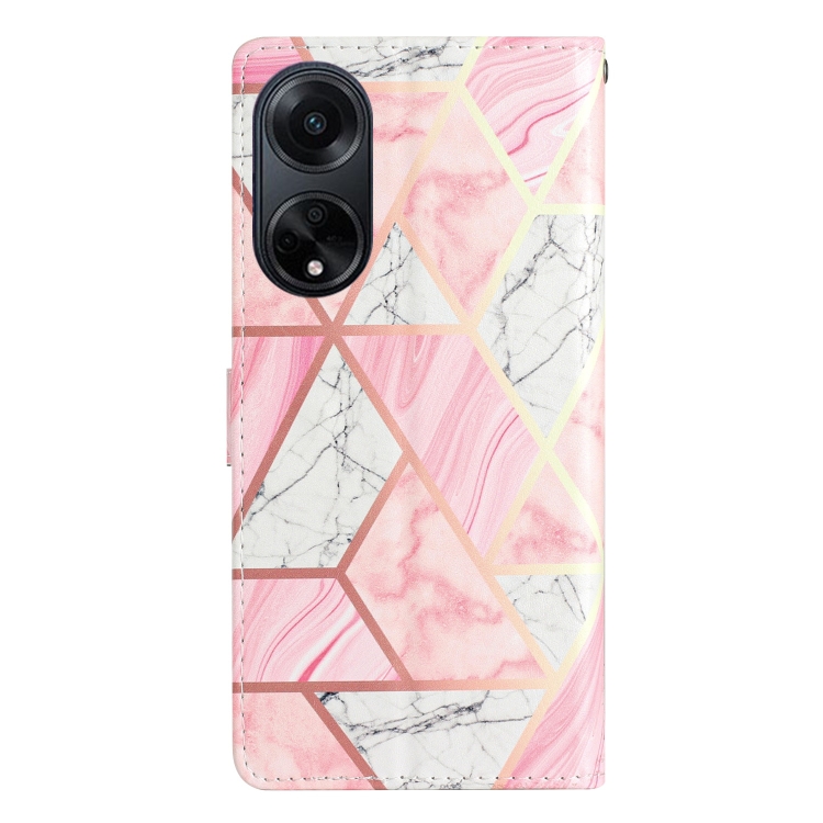 Para Oppo A98 Funda de Cuero con Dibujo Coloreado (Mármol Rosa)
