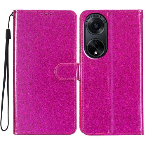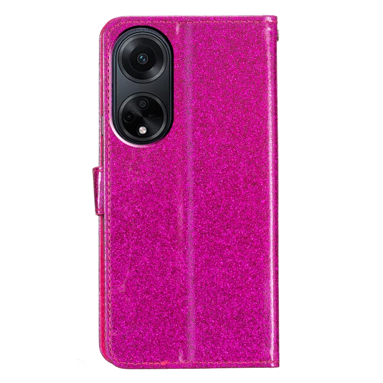 Para Oppo A98 Funda de Cuero con Tapa En Polvo con Purpurina (Rojo Rosa)
