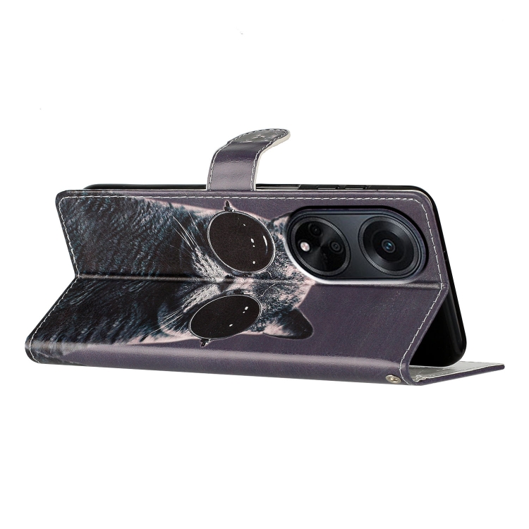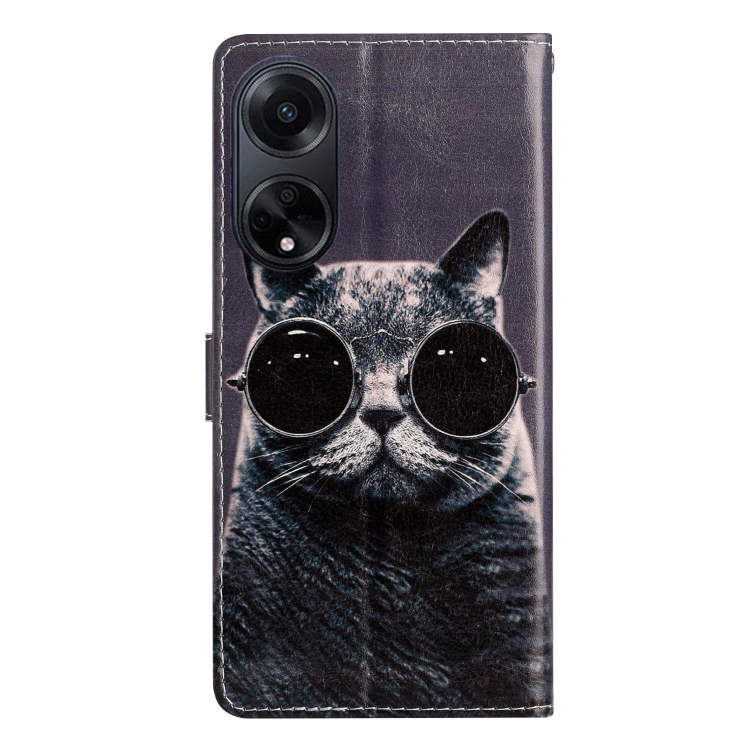 Para Oppo A98 Funda de Cuero para Teléfono con Dibujo Coloreado (Gato de Gafas de Sol)
