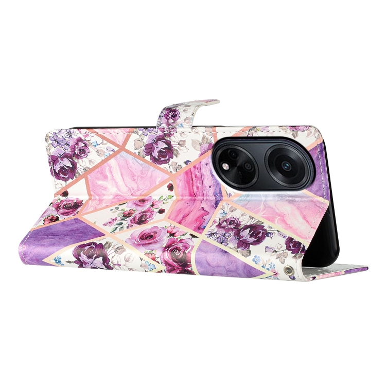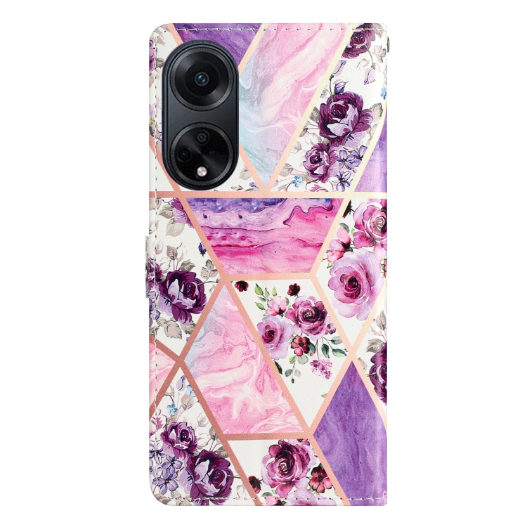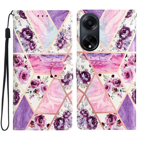 Para Oppo A98 Funda de Cuero para Teléfono con Dibujo Coloreado (Mármol Púrpura)