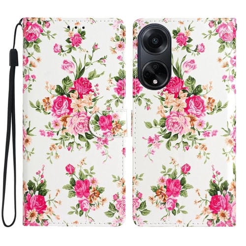 Para Oppo A98 Funda de Cuero para Teléfono con Dibujo Coloreado (Peonías)
