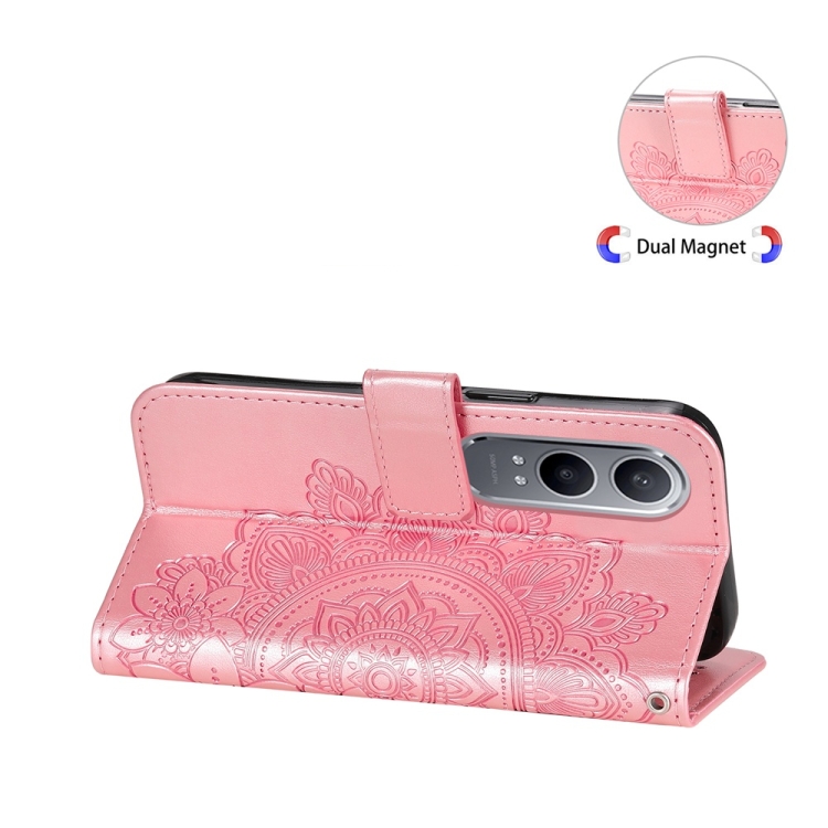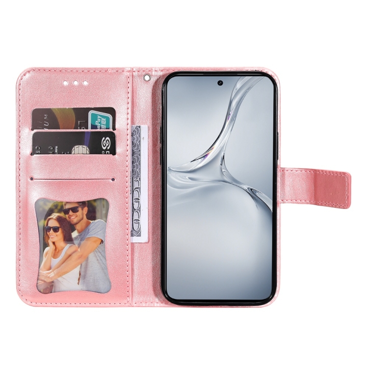 Para Oppo K12X Funda de Teléfono de Cuero con Estampado de Flores de Siete Pétalos (Oro Rosa)
