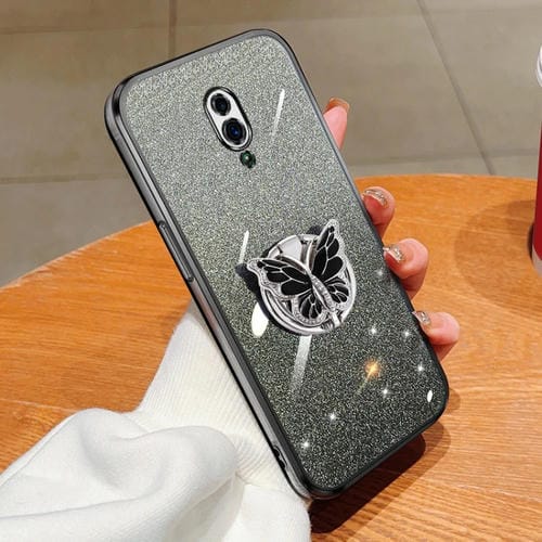 Para Oppo Reno Estuche para Teléfono de TPU con Soporte de Mariposa con Brillo Degradado Plateado (Negro)