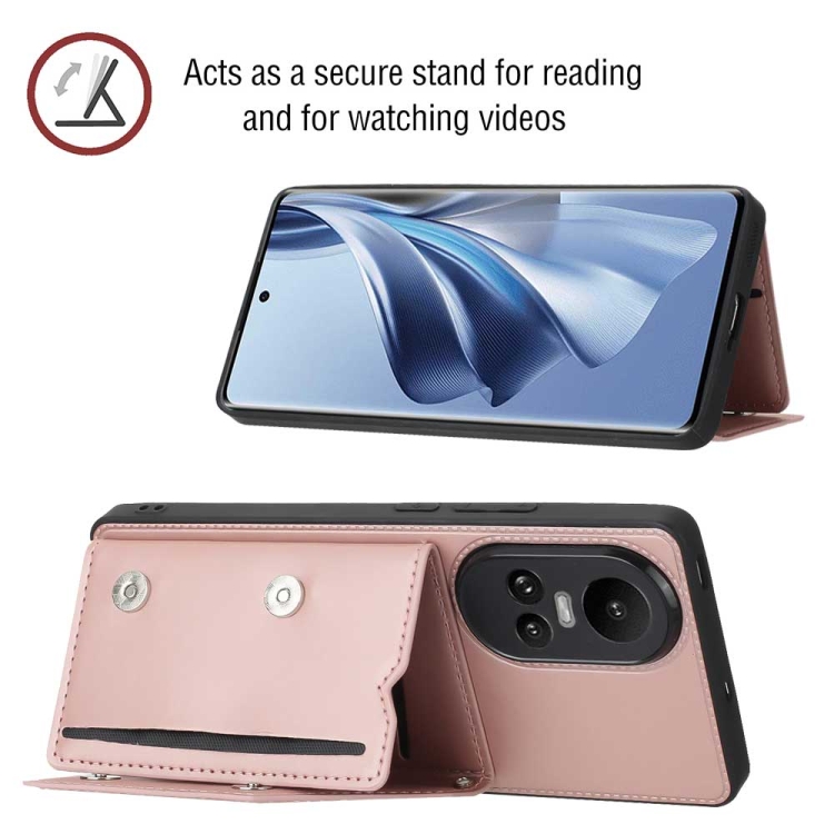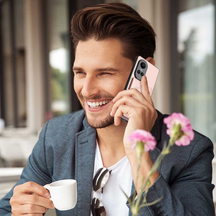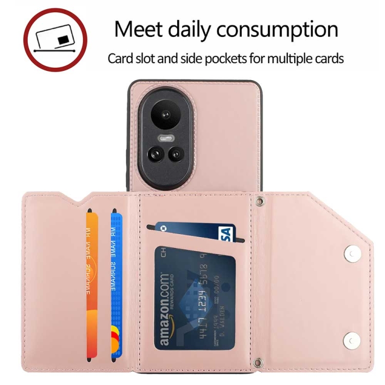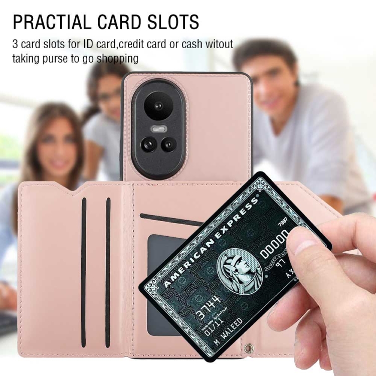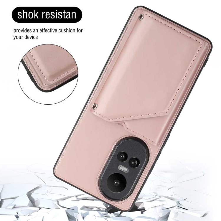 Para Oppo Reno10 / Reno10 Pro Global Skin Feel Pu + TPU + Funda para Teléfono con Ranuras para Tarjetas de PC (Oro Rosa)