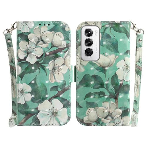 Pour OPPO Reno12 5G Global Étui en cuir à rabat horizontal couleur 3D (fleur aquarelle)