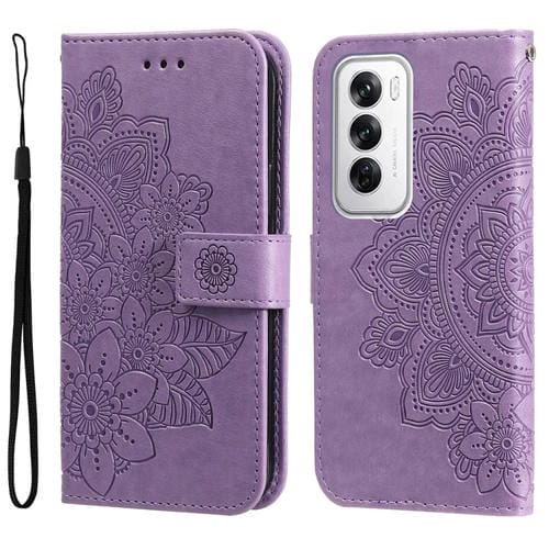 Para Oppo Reno12 5G Global Funda para Teléfono de Cuero con Estampado de Flores de Siete Pétalos (Púrpura Claro)