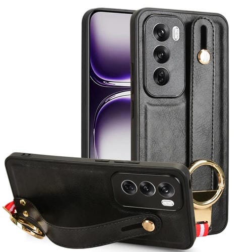 Pour OPPO Reno12 5G Global Bracelet Étui arrière en cuir pour téléphone (Noir)
