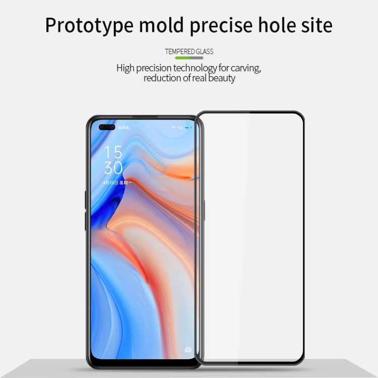 Para Oppo Reno4 Pinwuyo 9H 3D Curva Curva Curno Película de Vidrio a Prueba de Explosiones (Negro)