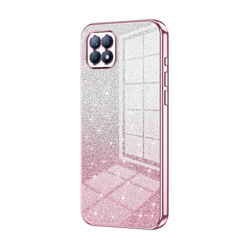 Para Oppo Reno4 Se Estuche para Teléfono Galvanizado con Polvo de Brillo Degradado (Rosa)