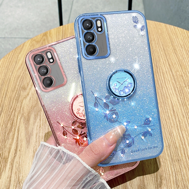 Para Oppo Reno6 Estuche para Teléfono con Todo Incluido con Anillo de Flor Inmortal con Brillo Degradado (Púrpura)