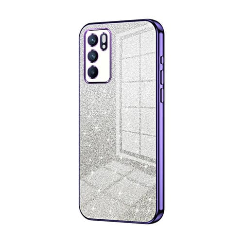 Para Oppo Reno6 Estuche para Teléfono Galvanizado con Polvo de Brillo Degradado Indio / Malayo (Púrpura)