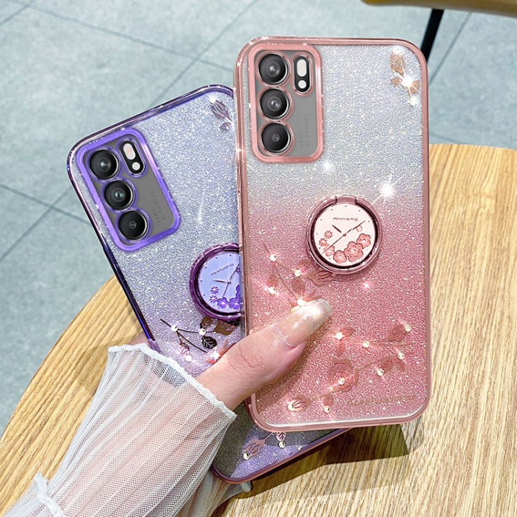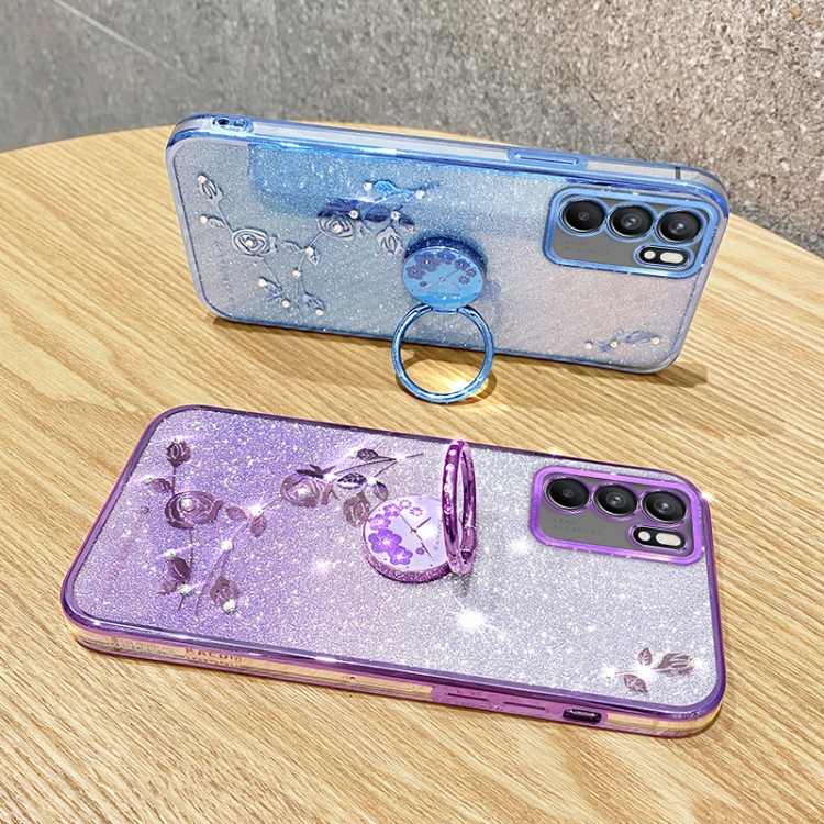 Para Oppo Reno6 Pro Gradient Glitter Immortal Flower Ring Funda para Teléfono con Todo Incluido (Azul)
