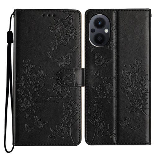 Para Oppo Reno7 Z 5G Butterfly Love Flower Funda de Cuero para Teléfono En Relieve (Negro)