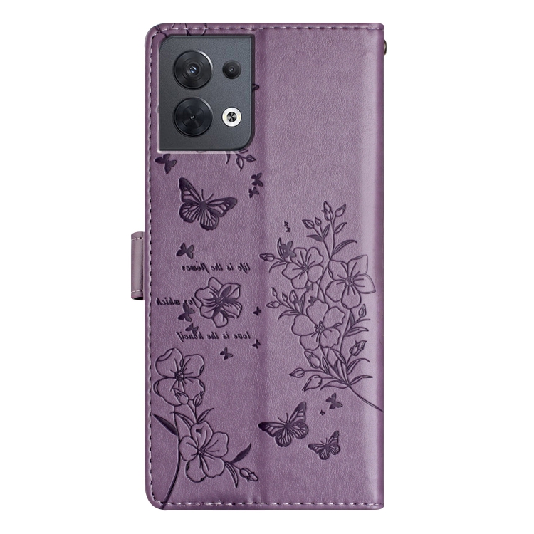 Para Oppo Reno8 5G Global Butterfly Love Flower Funda de Cuero para Teléfono En Relieve (Púrpura)