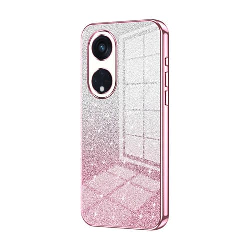 Para Oppo Reno8 T 5G Estuche para Teléfono Galvanizado con Polvo de Brillo Degradado (Rosa)
