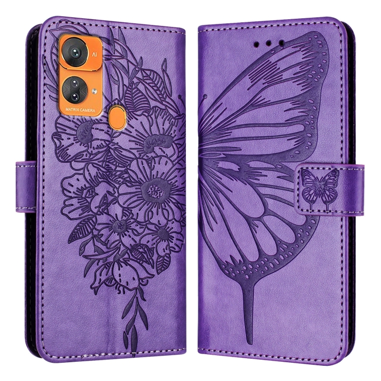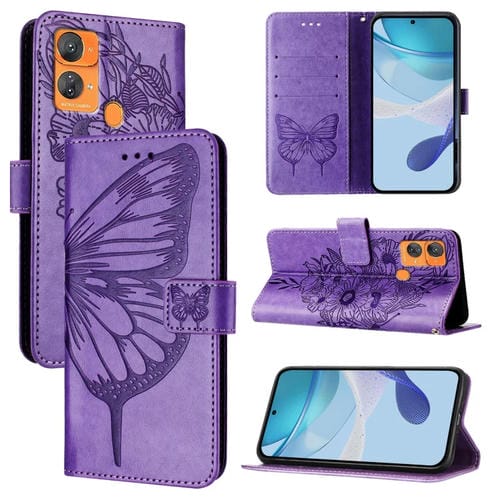 Funda de Cuero para Oukitel C33 con Mariposa en Relieve (Púrpura)