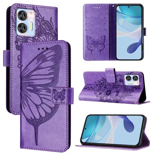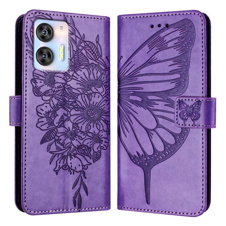 Funda de Cuero para Oukitel C36 / C35 con Mariposa en Relieve (Púrpura)