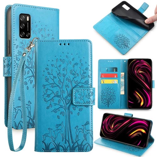 Funda de Cuero para Rakuten Big S Tree & Deer con Relieve para Teléfono (Azul)