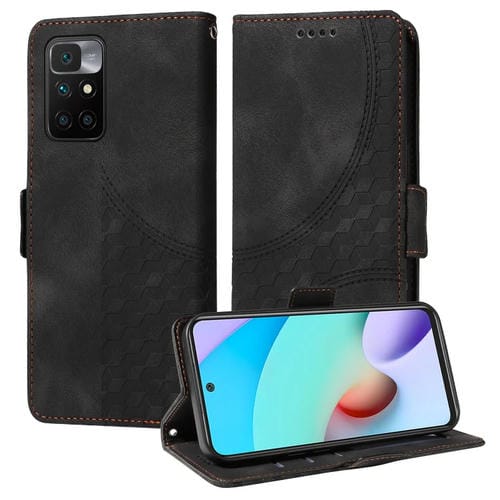 Para Redmi 10 2022 Funda para Teléfono de Cuero Estrellado con Rombos En Relieve (Negro)