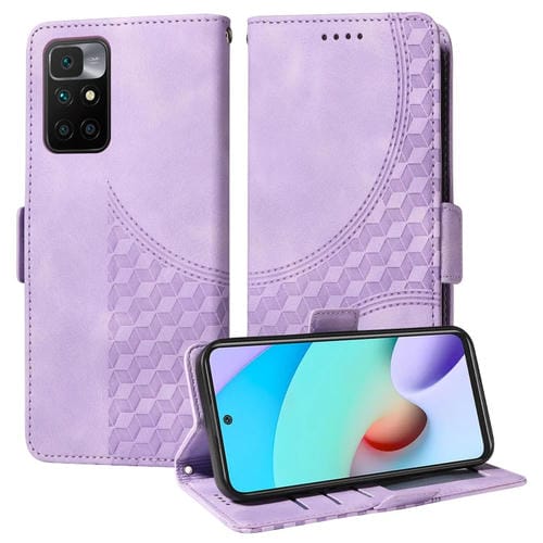 Para Redmi 10 2022 Funda para Teléfono de Cuero Estrellado con Rombos En Relieve (Púrpura)