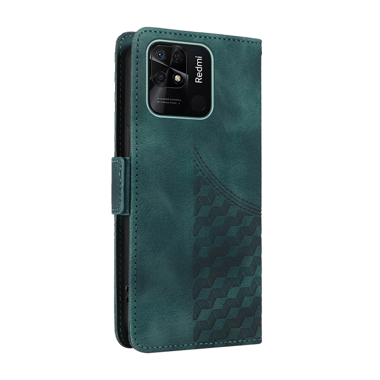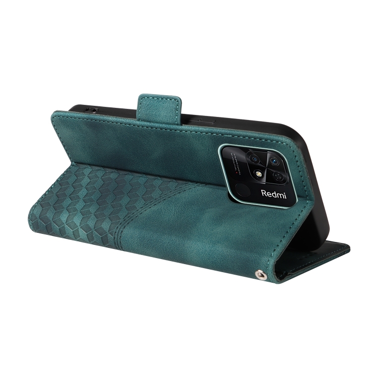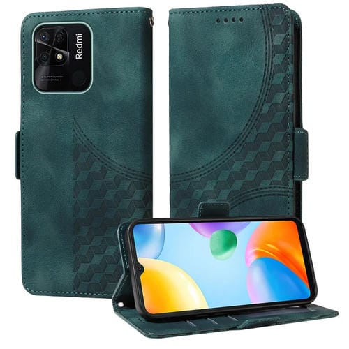 Para Redmi 10C / 10 India Funda para Teléfono de Cuero Estrellado con Rombos En Relieve (Verde)