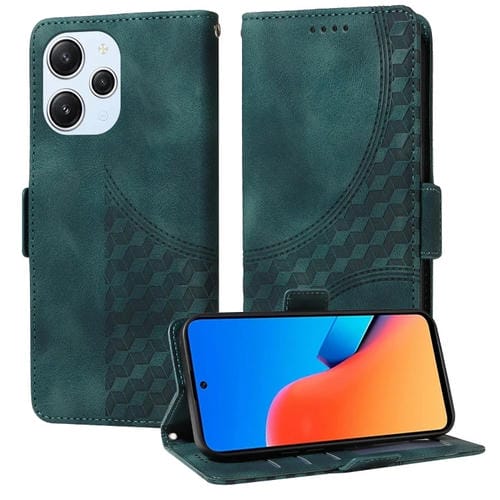 Para Redmi 12 4G / 5G / Note 12R Funda para Teléfono de Cuero Estrellado con Rombos En Relieve (Verde)