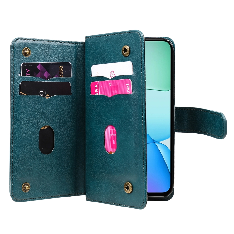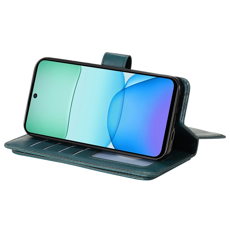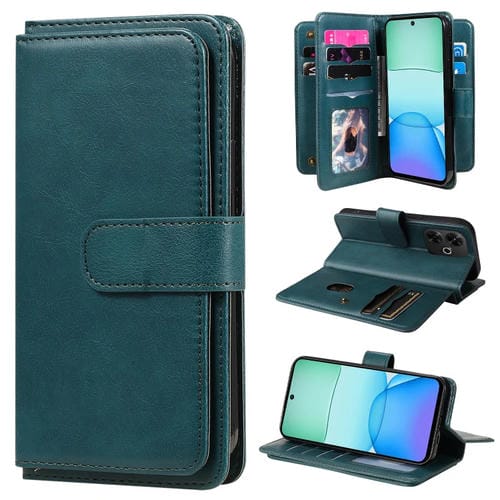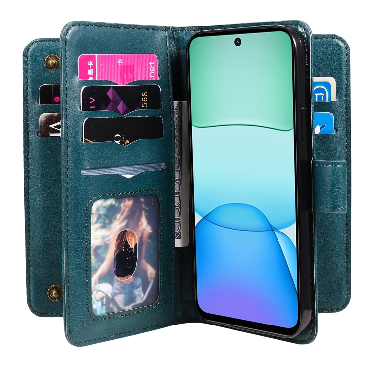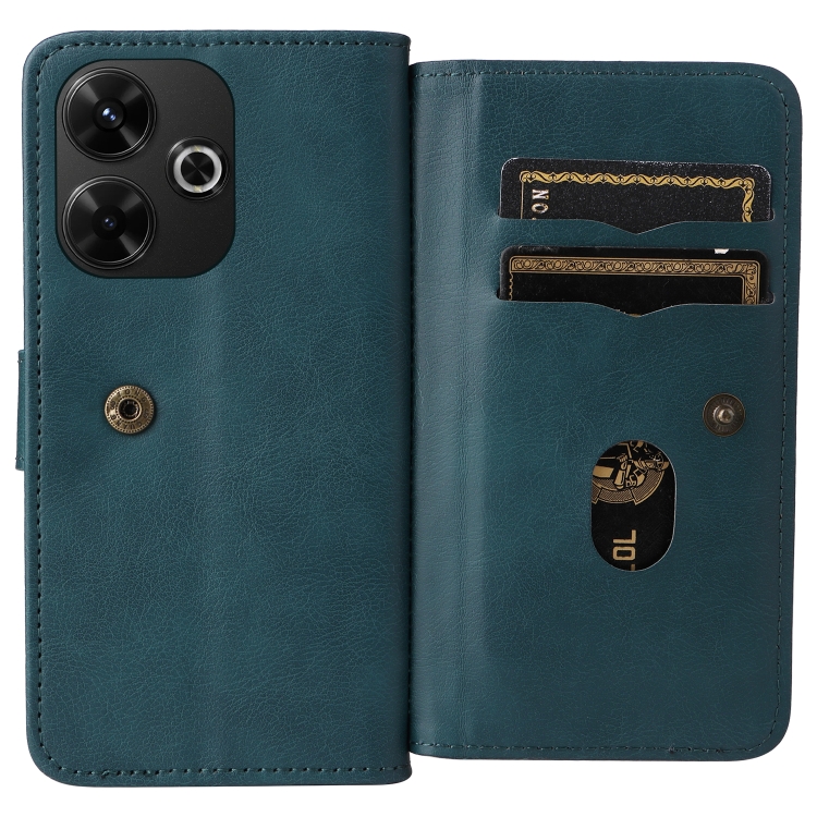 Para Redmi 13 4G Global Cartera Multifunción 10 Ranuras para Tarjetas Funda de Cuero para Teléfono (Verde Oscuro)