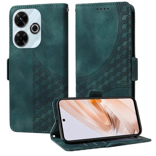 Para Redmi 13 4G / Note 13R 5G Funda para Teléfono de Cuero Estrellado con Rombos En Relieve (Verde)