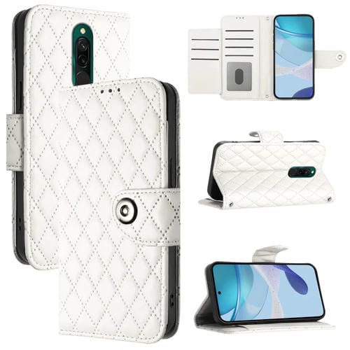 Para Redmi 8 Funda de Cuero con Tapa con Textura Rómbica y Cordón (Blanco)