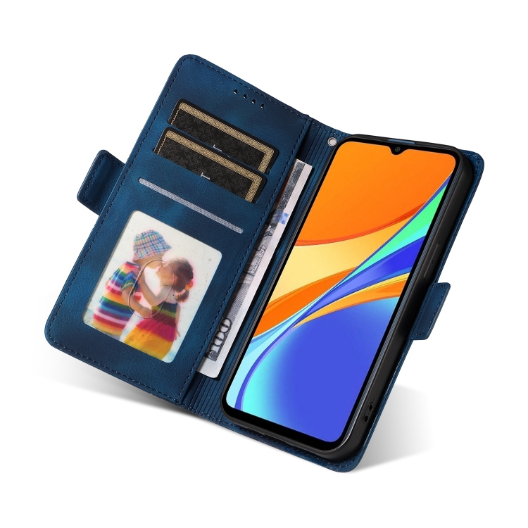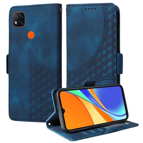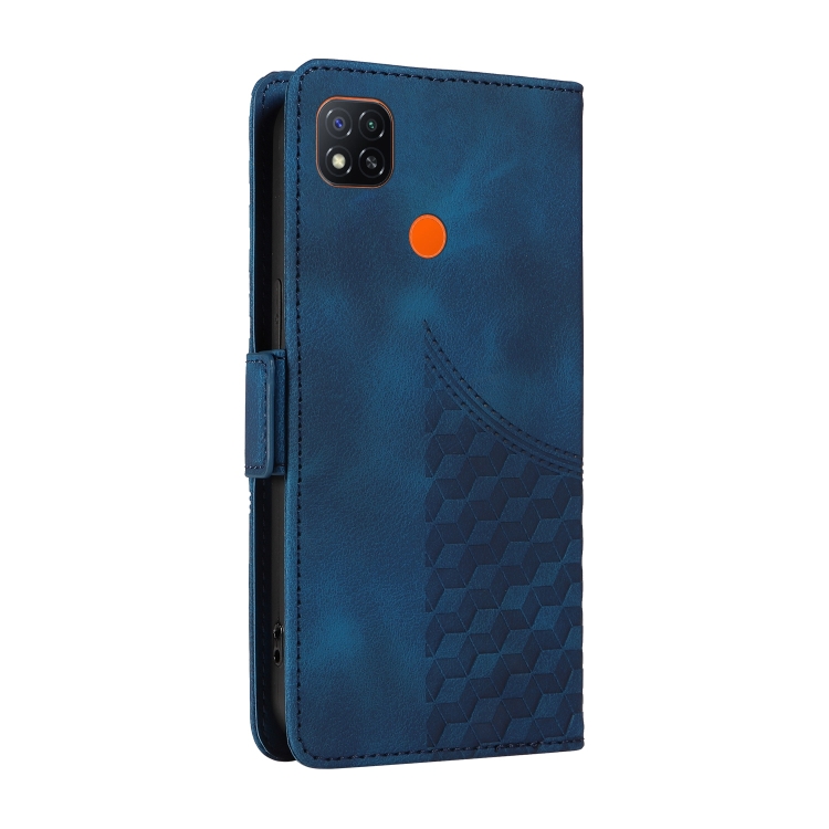 Para Redmi 9C / 9 India Funda para Teléfono de Cuero Estrellado con Rombos En Relieve (Azul)