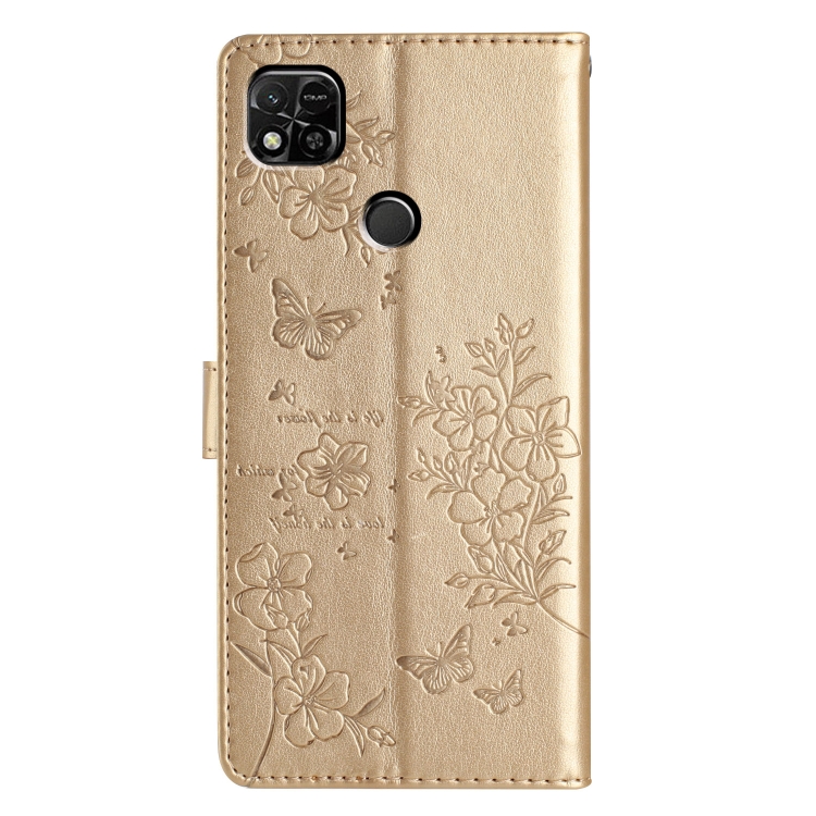 Para Redmi 9C Funda de Cuero para Teléfono con Mariposas y Flores (Dorado)