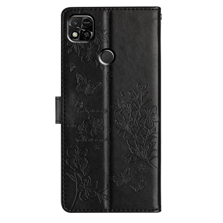 Para Redmi 9C Funda de Cuero para Teléfono con Mariposas y Flores (Negro)