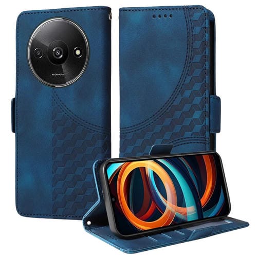 Para Redmi A3 4G Funda de Teléfono de Cuero Estrellado con Rombo En Relieve Global (Azul)