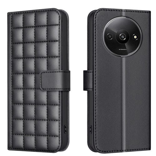 Para Redmi A3 Funda de Cuero con Textura Cuadrada (Negro)