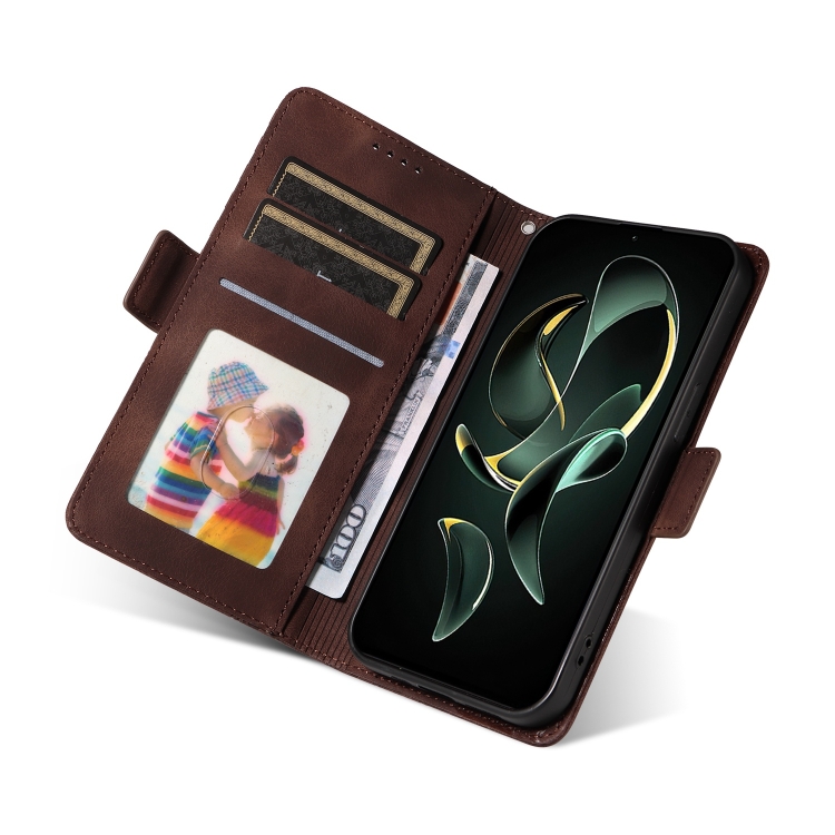 Para Redmi K60 Funda de Teléfono de Cuero Estrellado con Rombos En Relieve Ultra (Marrón)