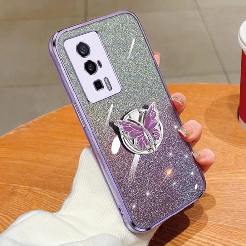 Para Redmi K60 / K60 Pro Funda para Teléfono de TPU con Soporte de Mariposa con Brillo Degradado Plateado (Púrpura)