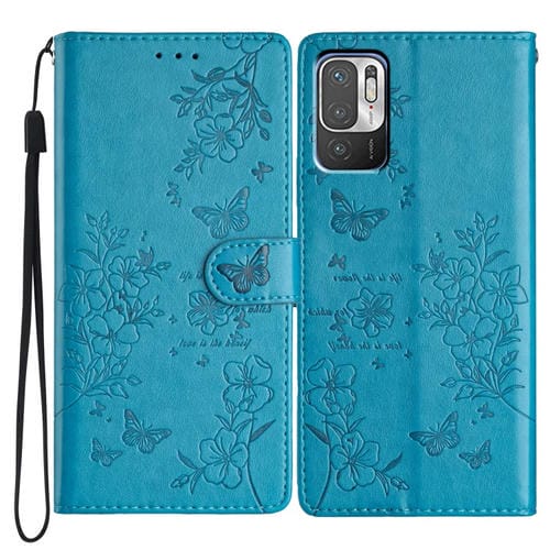 Para Redmi Note 10 5G Funda de Cuero para Teléfono con Mariposas y Flores (Azul)