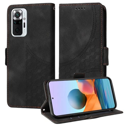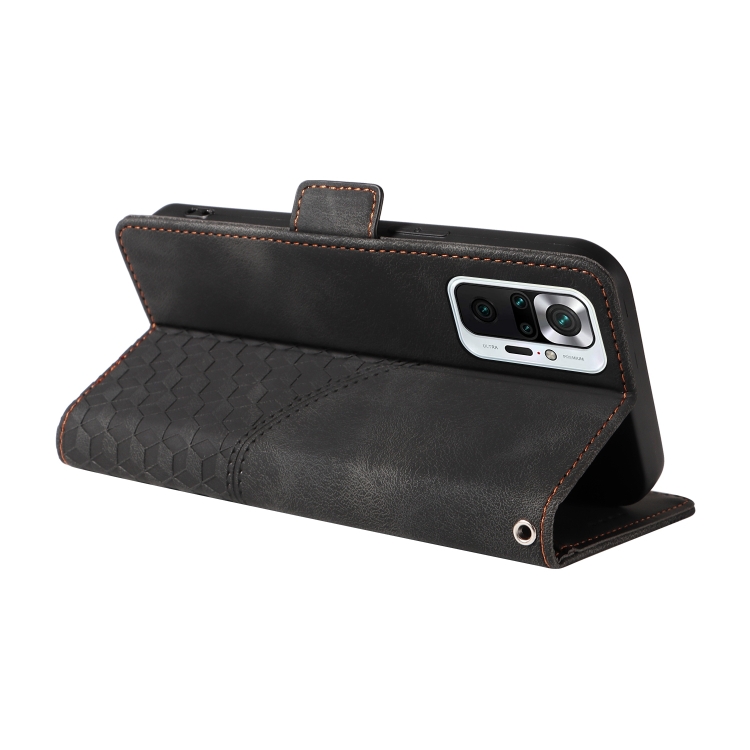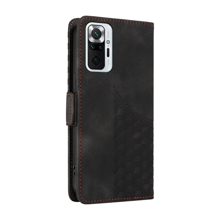 Para Redmi Note 10 Pro 4G Funda para Teléfono de Cuero Estrellado con Rombos En Relieve Global (Negro)