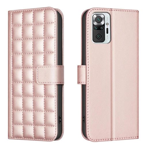 Para Redmi Note 10 Pro / Note 10 Pro Max Funda de Cuero para Teléfono con Textura Cuadrada (Oro Rosa)